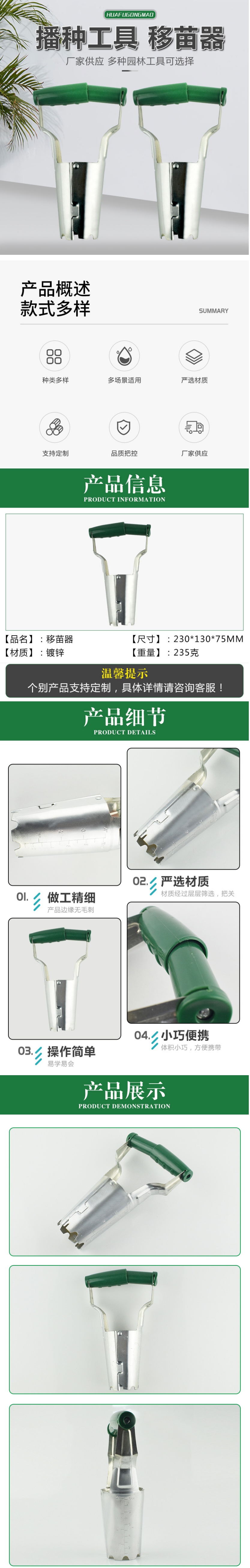 Zinc-plated white color transfer seedlings, using high quality iron materials production, electroplating of iron, used for porting and maintenance of plants and trees.