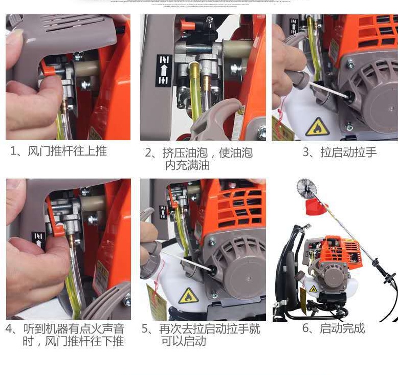Product Name: Backpack Mower Product Description: Engine Model: 1E36F Engine Type: Air-cooled, two-stroke (single-cylinder gasoline engine) Engine Power: 0.81kw/6000r/min Engine Displacement: 30.5cc Fuel Type: Floating Fuel Ratio: 25:1 Engine Idle Speed: 2800-3200r/min Fuel Tank Capacity: 1000ml Tube Diameter: 28mm Engine Net Weight: 3.8kg Total Machine Weight: 7kg Packing Size: 1850*520*400mm Carrying Method: Backpack