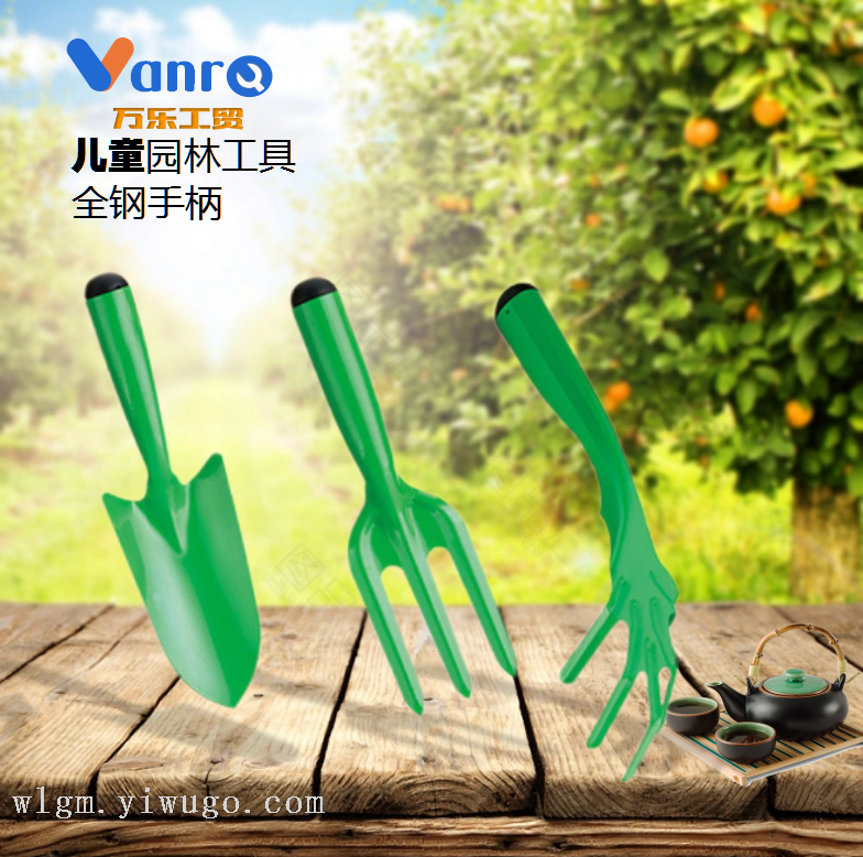 Apple green iron handle three-piece set, including a large shovel, a small shovel, a five-fingered rake, a handle and a shovel body integrated design, beautiful and practical.