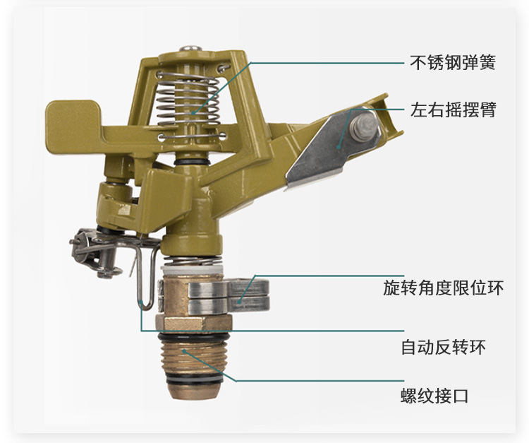 factory supply 360 degree rotating sprinkler zinc alloy floor outlet garden automatic cooling rocker arm sprinkler 中文版