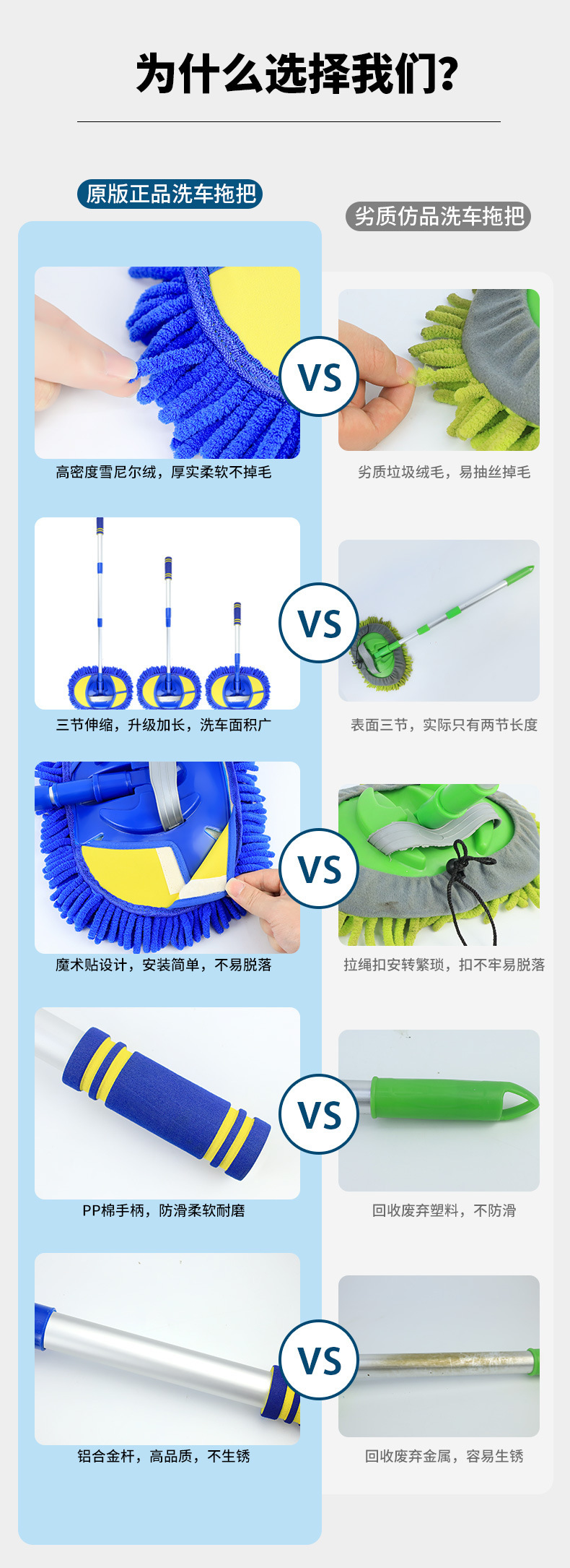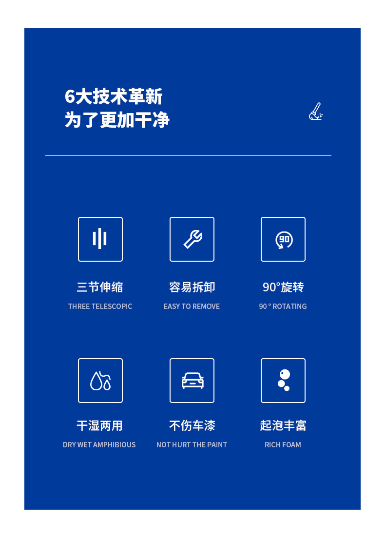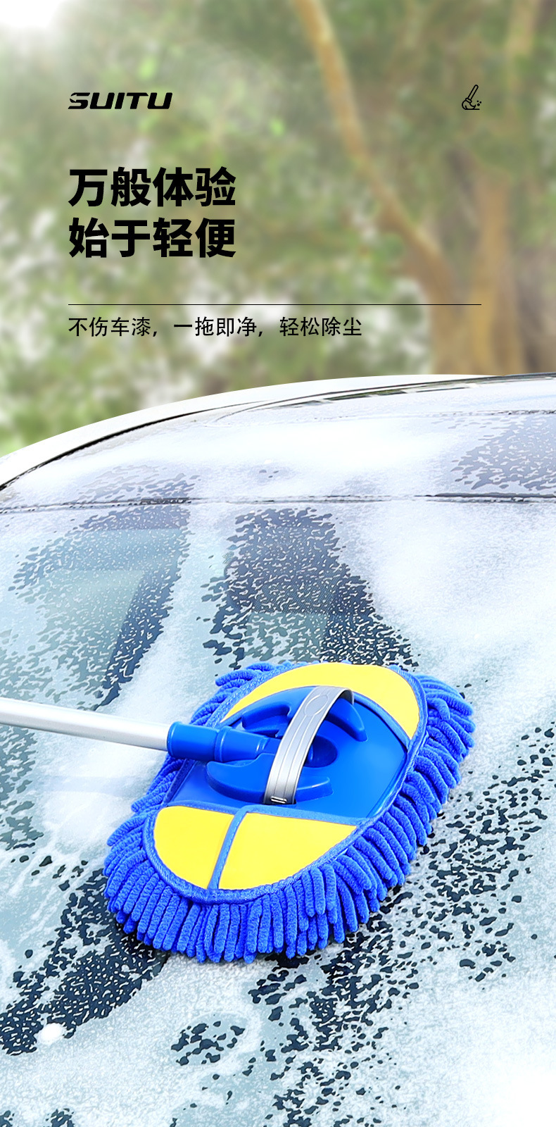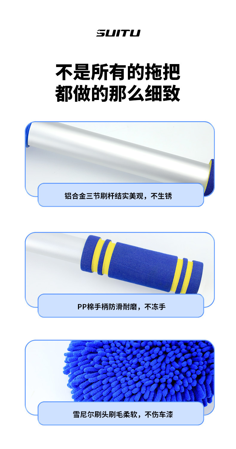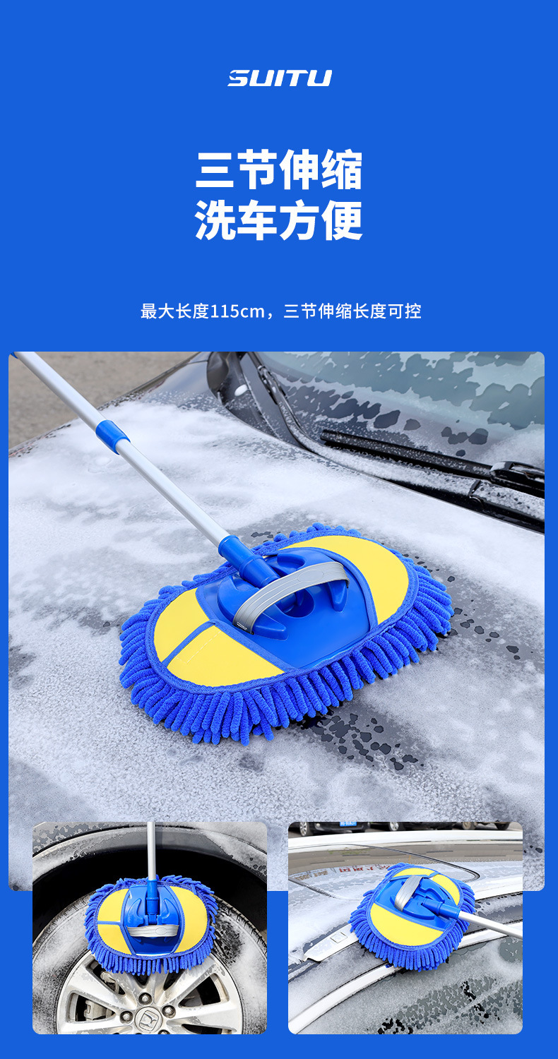 Car washing mop without harming car paint, car cleaning tool with soft bristles, professional car cleaning extension cleaning tool with three sections of extension, car cleaning mop.