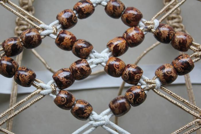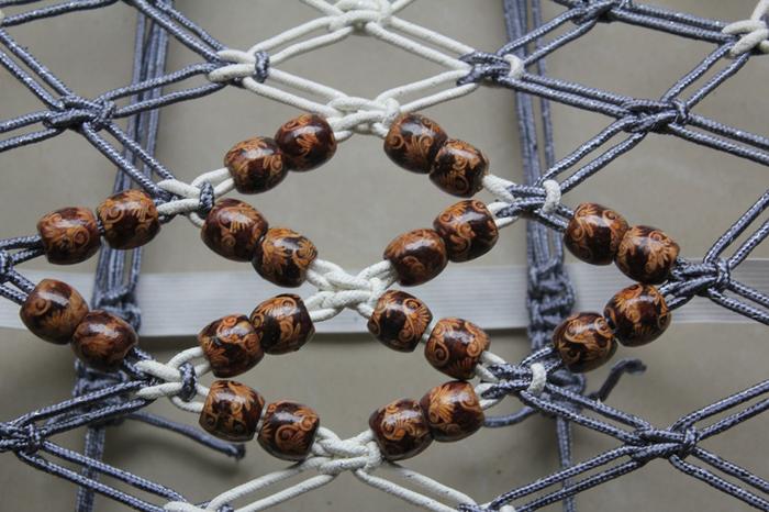 Product Introduction】This product is handmade with propylene fiber threads and printed wood beads.。Lattice design, breathable, cool,Perfect for summer use.