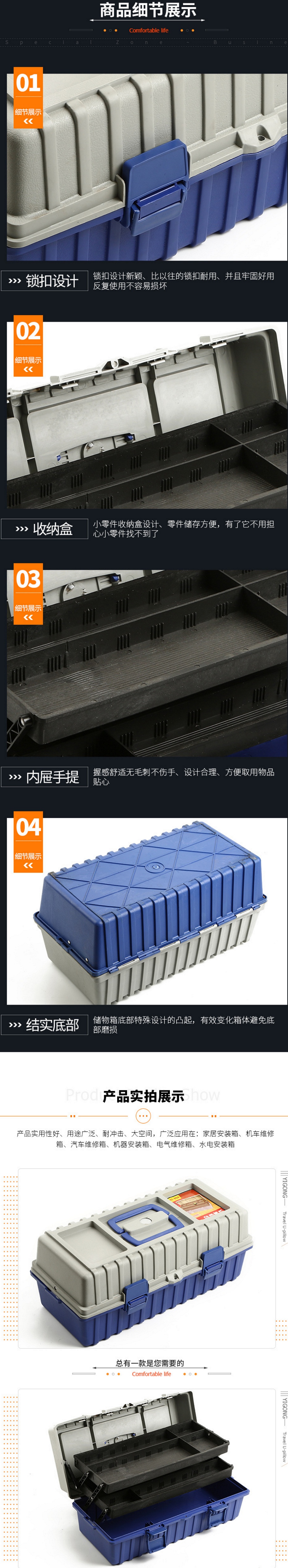 a17-inch 19.5-inch plastic toolbox multi-function toolbox durable toolbox 中文版