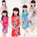 Children's cheongsam for ages 2-14, available in 7 sizes (2, 4, 6, 8, 10, 12, 14) and 7 colors. Made of simulated silk silk fabric.