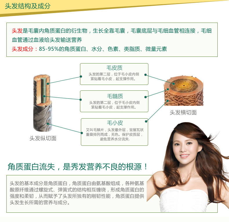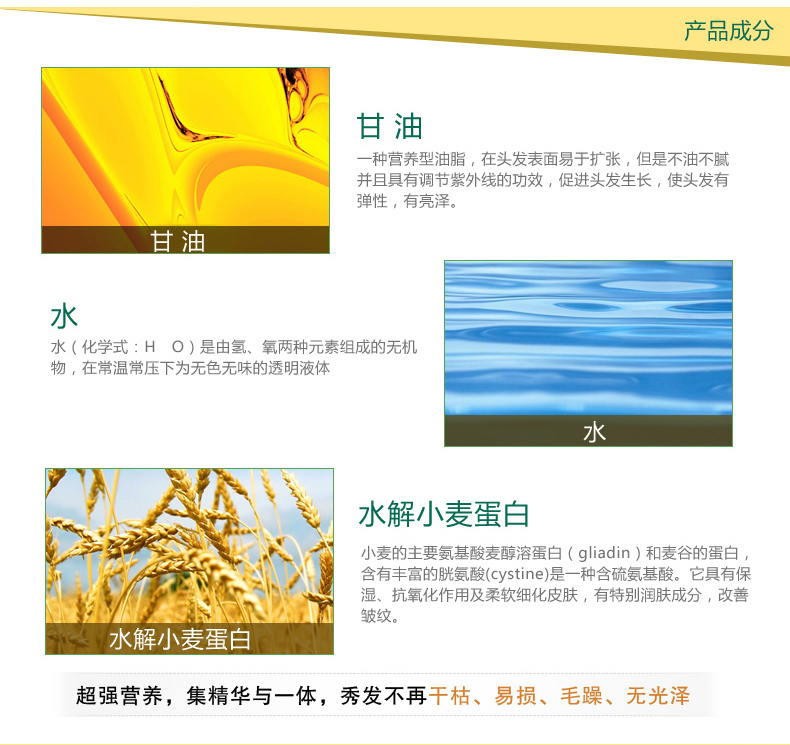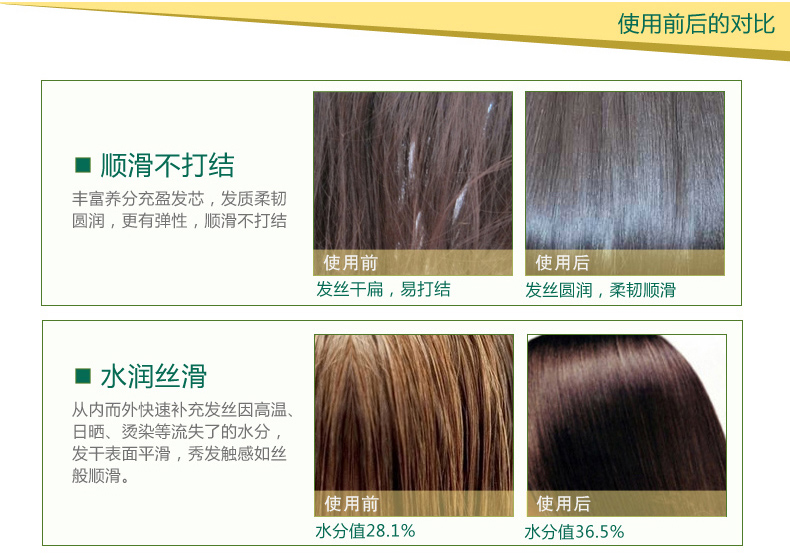 Ultra-soft hair mask: suitable for damaged hair.Rich in vitamin E, hydrolyzed protein, and trace elements essential for hair tissue, it provides the necessary nutrients for hair. It can restore the natural luster and softness of the hair, and form a protective film on the surface of the hair, helping damaged and split hair caused by sun exposure, blowing, and dyeing, so that the hair quality remains healthy at all times.