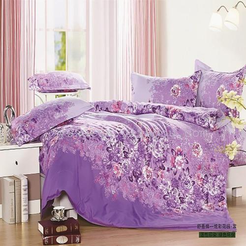 four-piece bedding set pure cotton snow pigeon home textile shuxiang cotton foreign trade domestic sales-colorful garden purple 中文版