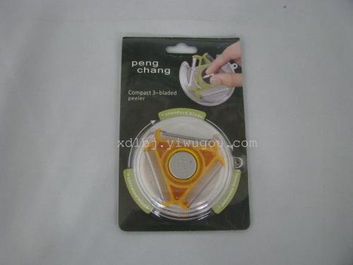 This is a creative peeler. This product is made of high-quality ABS and high-carbon stainless steel blades. The appearance is beautiful, the rotating blade is multi-functional and does not easily rust, the concave design is safe and easy to carry, and the clever structure design is convenient to clean. The blade has been heat treated, and the blade edge is sharp and durable. The inside blade is finely electropolished, with high luster. The sharp inner blade has a free-moving angle that can tightly adhere to the surface of the fruit skin. This thoughtful design makes it easy for even first-time users to peel fruits and vegetables thin and clean. It also comes with a hole digger, which can easily remove the difficult-to-handle places on the skin.