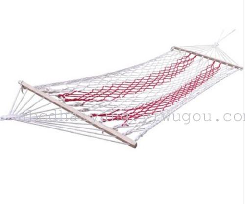 Outdoor 800*200CM swing hammock with wooden poles and cotton ropes, single person mesh hammock with thickened reinforcement.