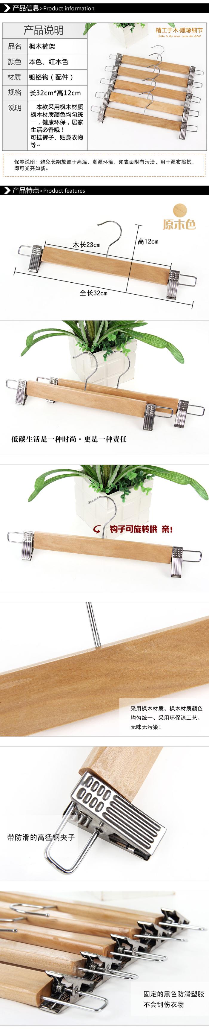 non-slip solid wood hanger/wooden pants rack/pants rack/solid wood pants clip/clothes rack hot sale 中文版