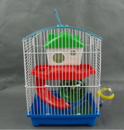 Classic and beautiful in appearance, with an internal fixed hut, silent spinning wheel, platform, slide, food bowl, and water bottle, it comes with a carrying handle for portability, is easy to clean, making it an ideal cage for hamster care.