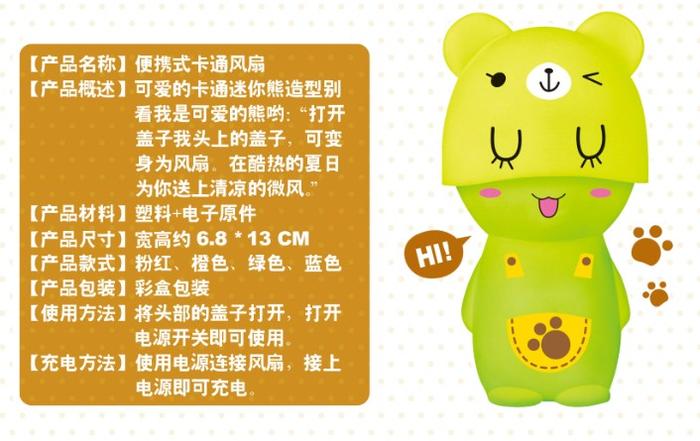 mini little fan circle bear handheld rechargeable small fan little fan outdoor cartoon little fan 中文版