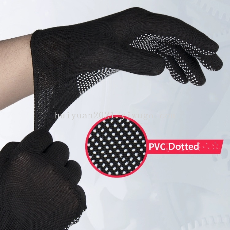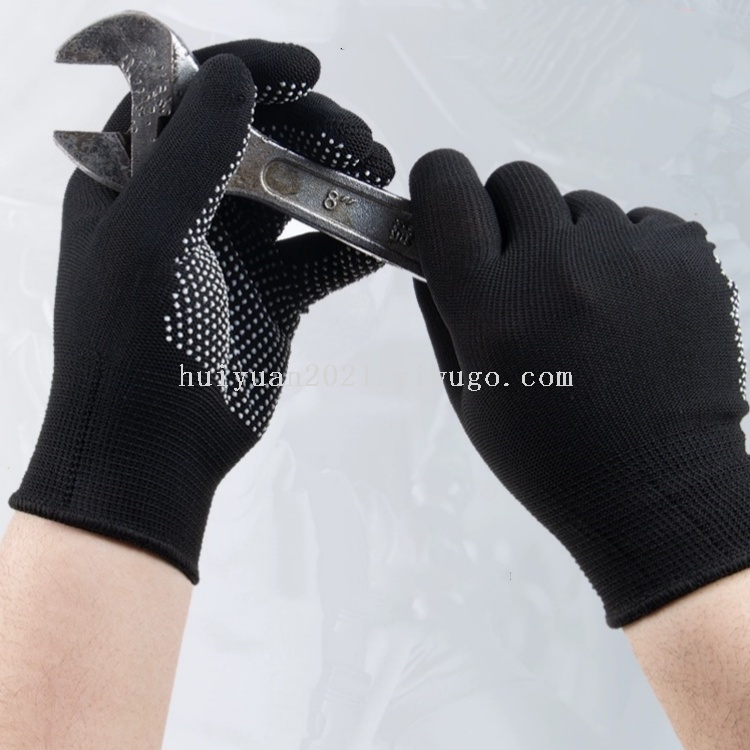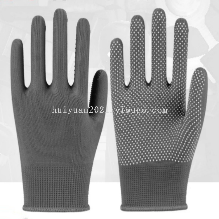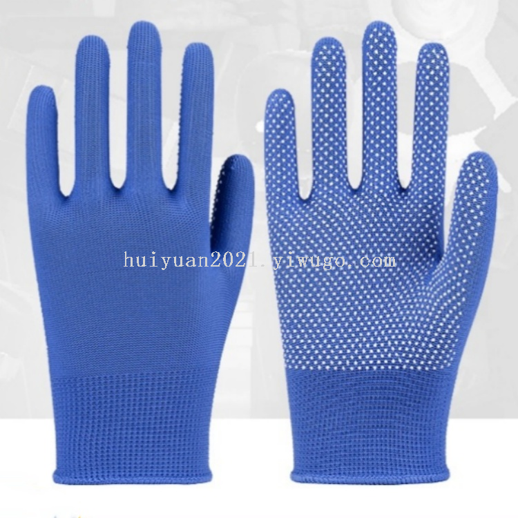 Dot-glue nylon gloves, durable and wear-resistant, colors can be customized according to customer's requirements.