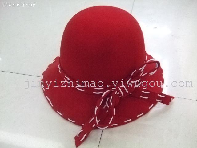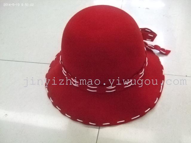 100% Pure Wool Felt Customized Wave Edge Fisherman's Hat with Woolen Ribbon Decorwide-brimmed hat