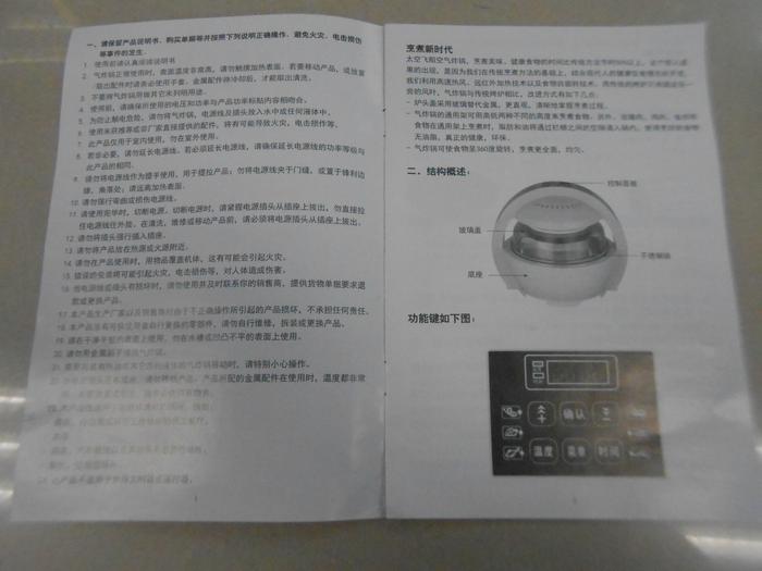 空气炸锅具有多功能无油烟易清洗高效能简便实用美观省事等等功能利用远红外系统加热提高热效能3D立体加热超强热旋风系统和热对流结合 加热均匀 低油脂低卡路里 一键式电子控制板简单操作 360度可视窗通过德国GS 欧盟CE 美国ETL国际电工IEC安全认证220-240V 50HZ 1100W 12L 65-250度可调独立彩盒包装 10台起订