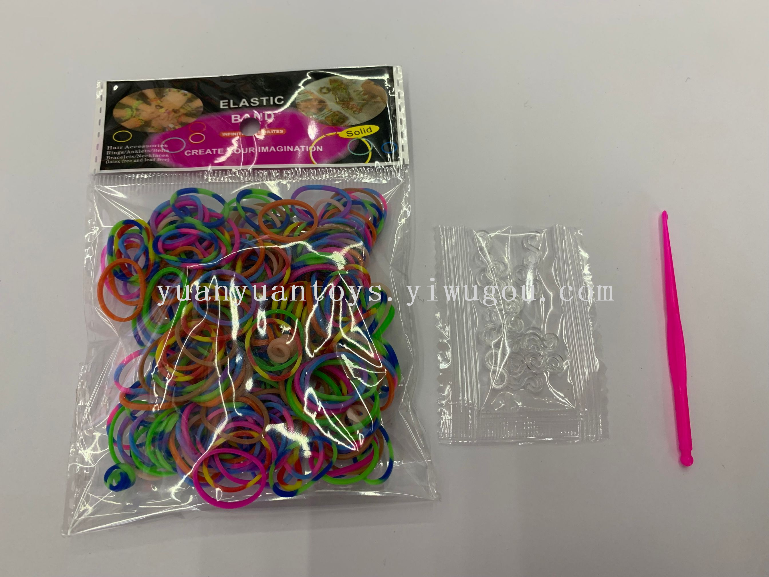 A variety of ordinary elastic bands, including two-color, three-color, night-light, onion powder, and more. We have a full range of styles, including OPP bag packaging and card packaging.