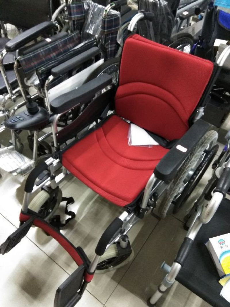 Spray-painted steel frame with fixed structure, foldable rear armrest, detachable footrest, rubber foam front and rear wheels, and detachable backrest.