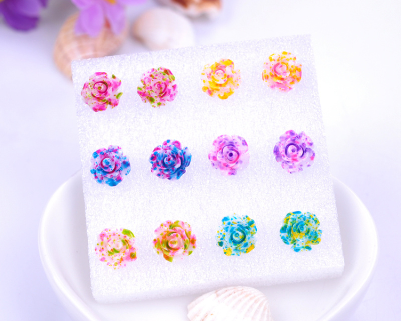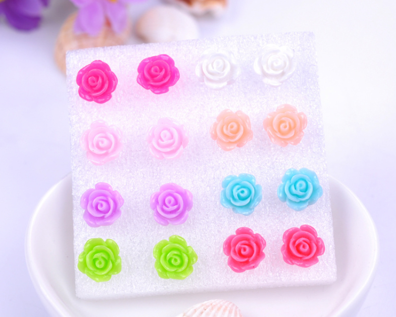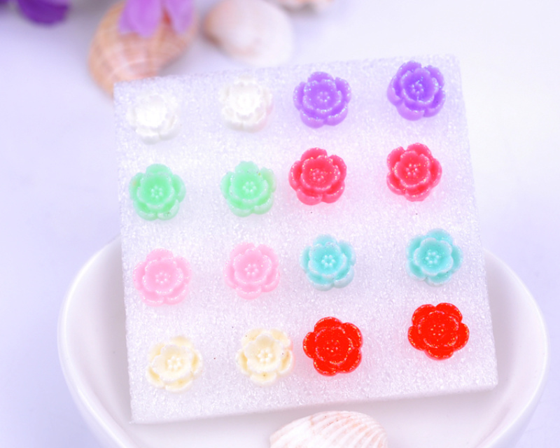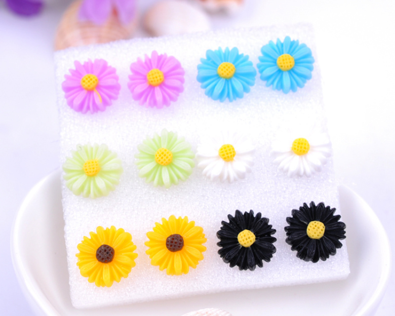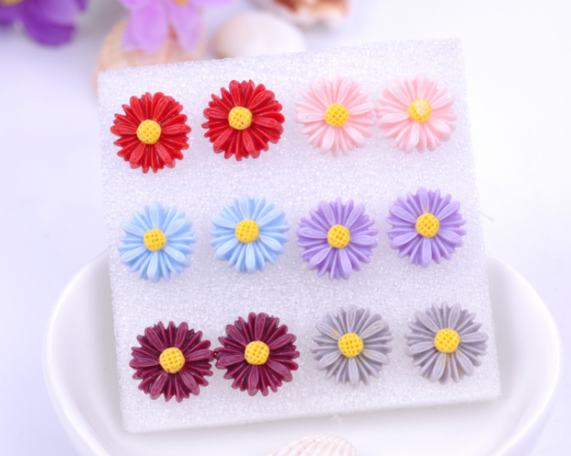 rose ear daisy stud earrings female temperament south korea anti-allergy plastic earrings random hair style 中文版