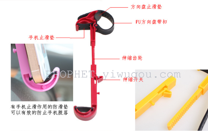Installation Method: Straighten the steering wheel, install it directly above the steering wheel, and secure the elastic clip to the hooking part of the phone holder. After installation, adjust the angle and clip the phone in place.