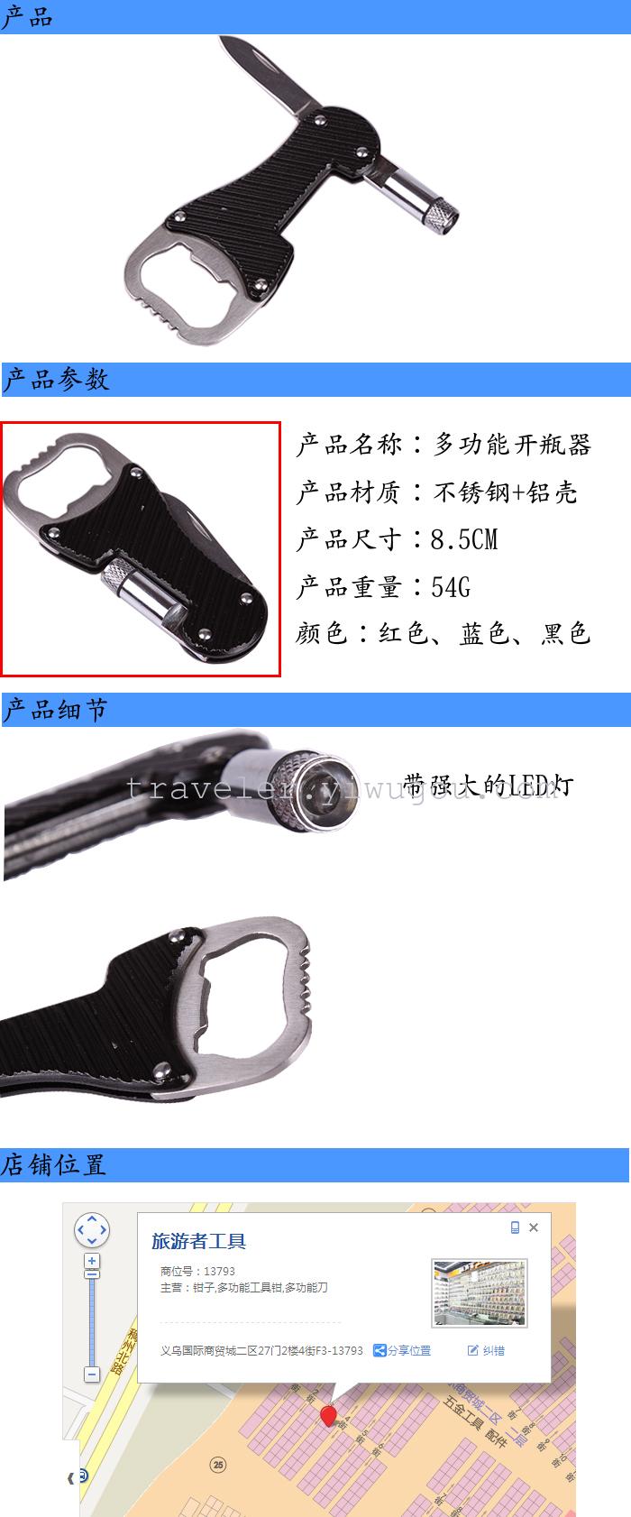 traveler multi-function bottle opener gift knife with led light km016 model promotional gift 中文版