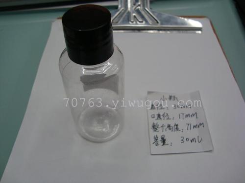 This is a bottle bottles made of PET material, with rotating lid, PP plastic, bottle diameter 17MM, bottle diameter: 30MM, full height: 71MM, 5,000 a box, a box set, welcome to the need of businesses to purchase, price, delivery, product code: SD2344