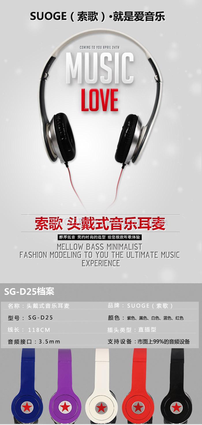 | Brand: Suoge brand headphones | Model: SG-D25 | Stock Category: In-Stock |