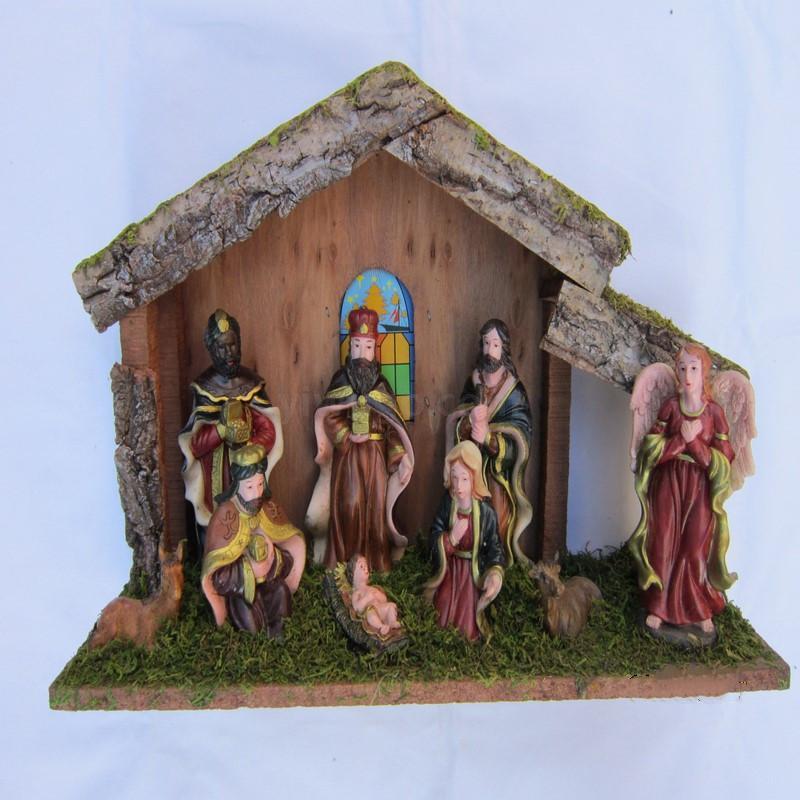 【Product Name】: Medium to Large-sized Christmas Manger Set 【Product Size】: 40X13X26cm 【Product Material】: Resin + Wood 【Product Color】: As shown in the figure (can be processed)