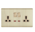 About Product:Twin 13A illuminated multifunction switch socket three holes. Champagne gold wood grain color, PC panels, 0.6MM copper fittings, 0.35MM silver contacts.