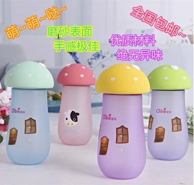 creative lady children's thickened heat insulation water cup portable and cute fashion frosted mushroom water bottle 中文版