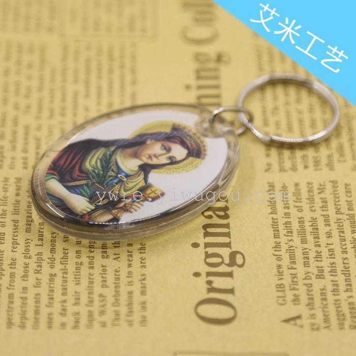 christian oval double-sided plastic key ring acrylic keychain