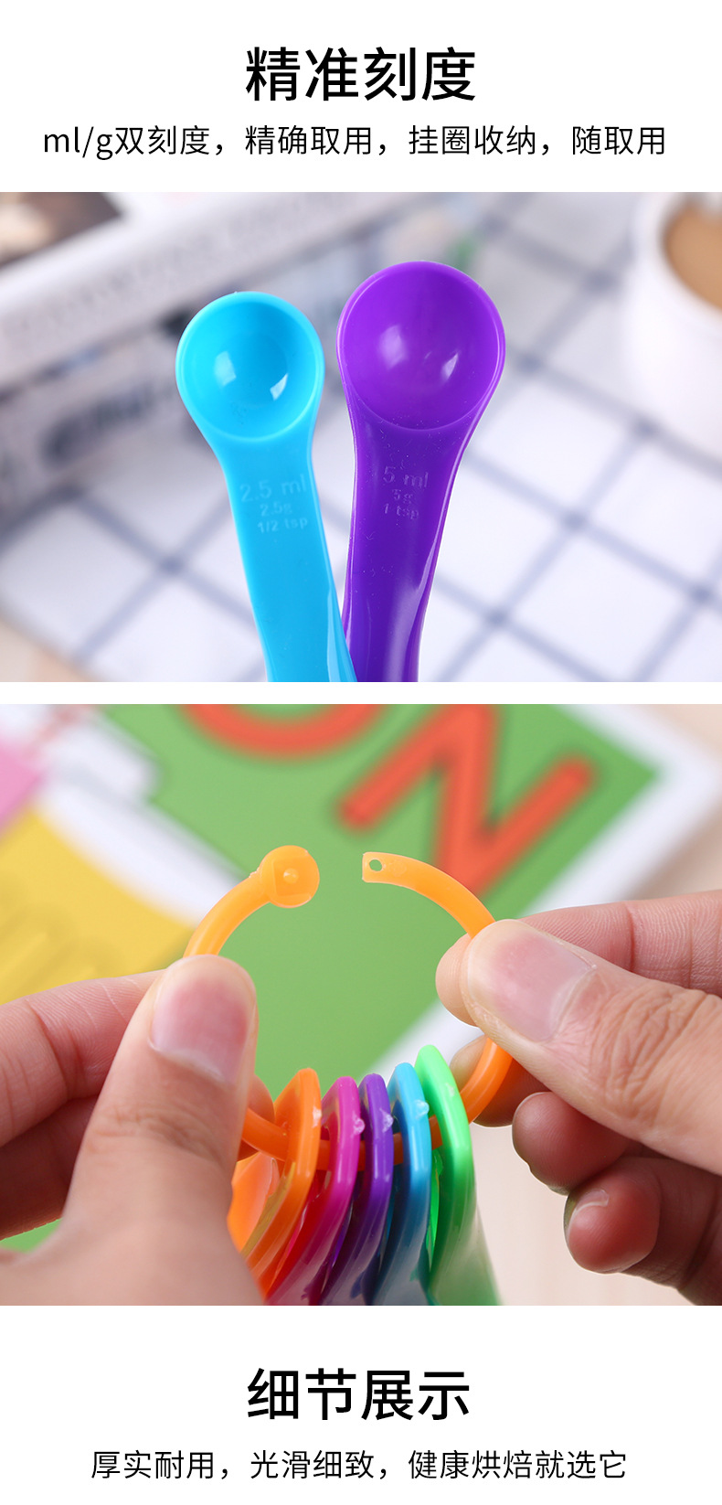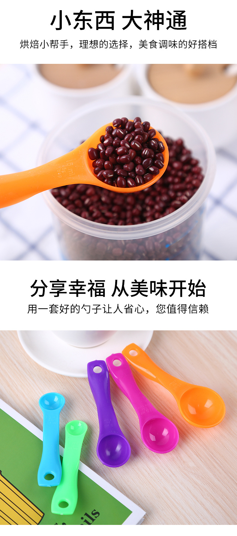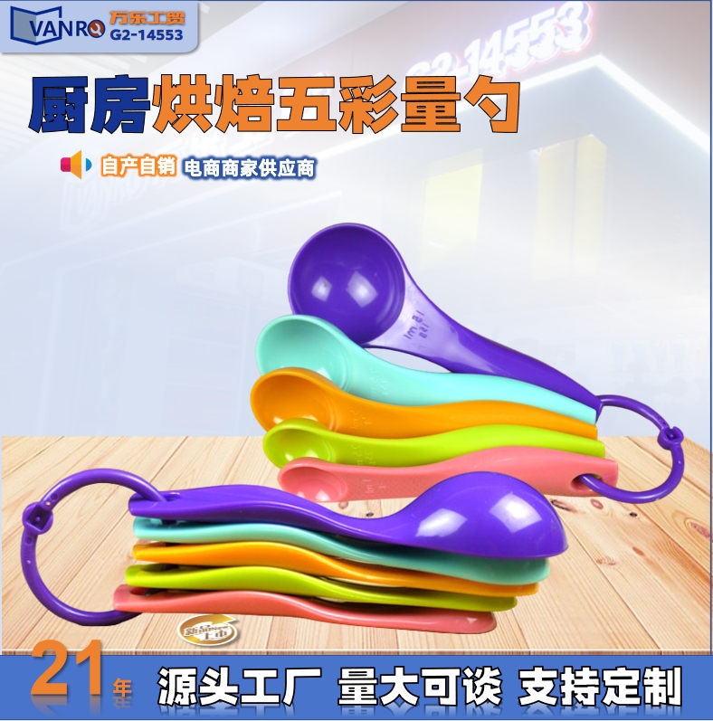 kitchen baking tools colorful measuring spoon milk powder color plastic double scale measuring spoon 5-piece set in stock factory direct supply 中文版