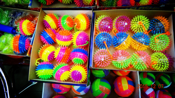 我厂是生产销售:各种发光毛毛球、发光按摩球、闪光TPR玩具、足球,篮球,排球,橄榄球,充气拍拍球。闪光灯笼、弹力球。太空球、等产品专业生产销售,公司总部设在浙江省义乌市佛堂镇新木材市场对面张宅小学,分公司在义乌市国际商贸城E-2713。