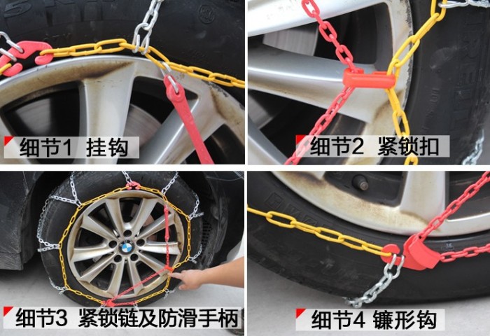 3.Anti-skid chains must be installed on the appropriate tires, and different models are suitable for different hub sizes and tire widths. Please note to choose the anti-skid chains that match the wheel size. Both too loose or too tight installation are not suitable for use.Please provide the Chinese text you want to translate, and I will translate it into English for you.If there is an unusual sound or anomaly while drivingPlease provide the Chinese text you want to translate, and I will translate it into English for you.Please stop to check if the installation is improper.