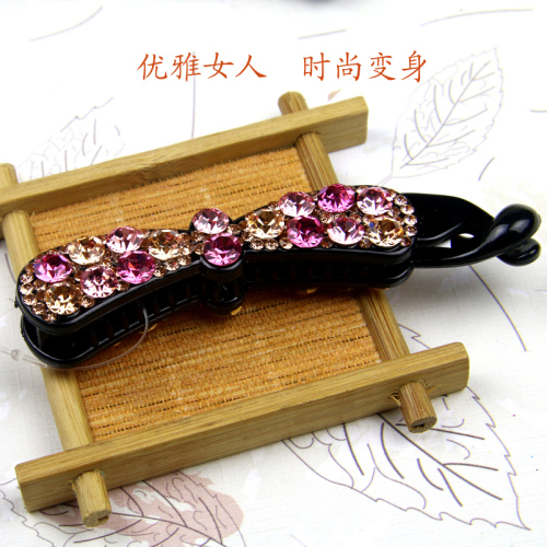 【Product Model】: MLT-384 【Product Size】: Length: 10.0CM, Width: 2.0CM 【Product Material】: Resin base clamp, imported Czech water diamonds, eco-friendly glue 【Product Color】: Deep Pink + Light Pink + Champagne, Dark Coffee + Champagne, Dark Purple + Light Purple, Dark Blue + Gray, Vivid Purple, and Red Multicolor, etc. Custom colors are available. |