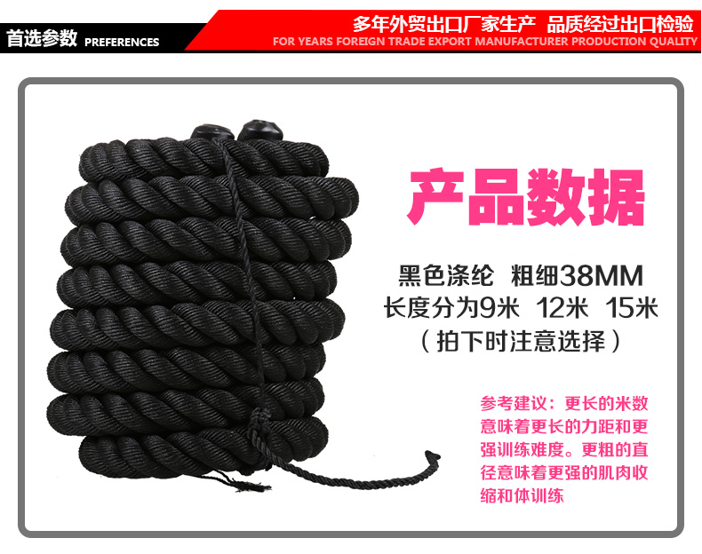 Product Specifications: International Professional Length: 9m, 12m, 15m; Diameter: 3.8cm, 4cm, 5cm;