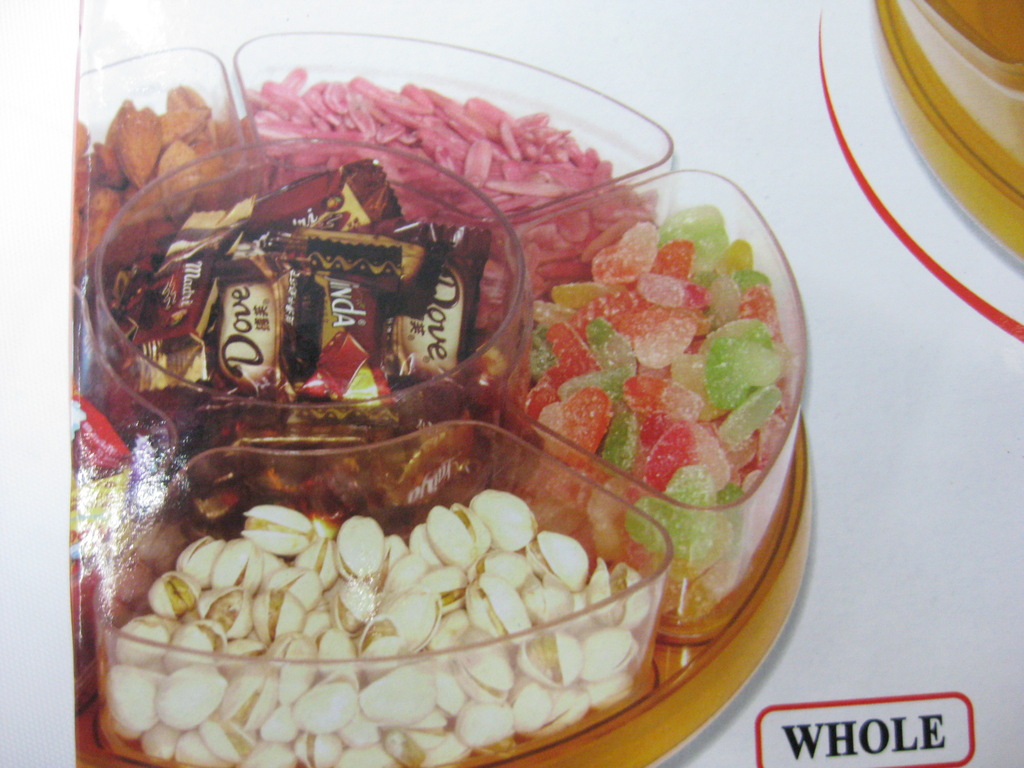 Crafted with health and safety materialsPlease provide the Chinese text you want to translate, and I will translate it into English for you.The six-compartment tray can hold different types of candies, preserves, or nuts, and the base can rotate for convenience in serving guests.Please provide the Chinese text you want to translate, and I will translate it into English for you.The inner compartment can be freely removed for easy cleaning and can also be used without compartments, making it a must-have item for every household for weddings and festive occasions.