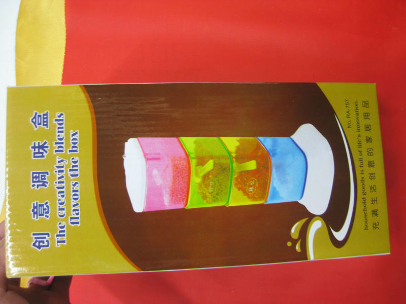 1. The overall design of the seasoning box, with four independent compartments each capable of rotating 360 degrees, holds the seasonings inside.