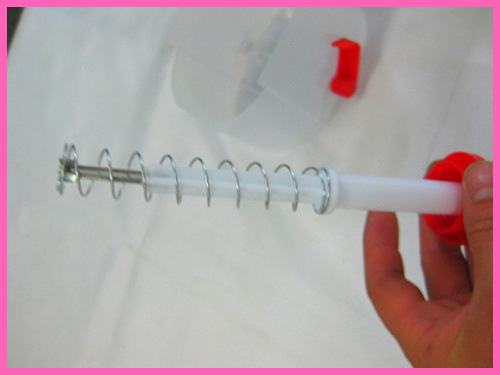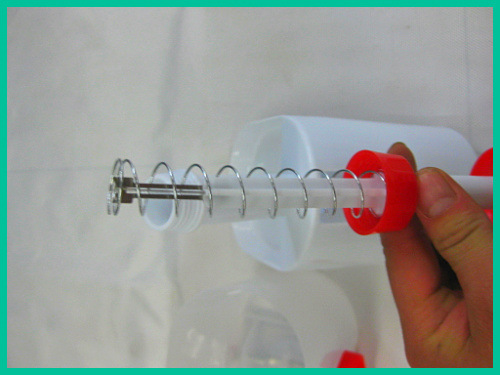 3. Simply press the handle on the socket, and the stainless steel blade inside will pierce the cherry, pushing the pit into the cup body. Then, with a gentle backward motion of the whole pit remover, the pit-removed cherries will roll out of the hole into the bowl that has been set aside.