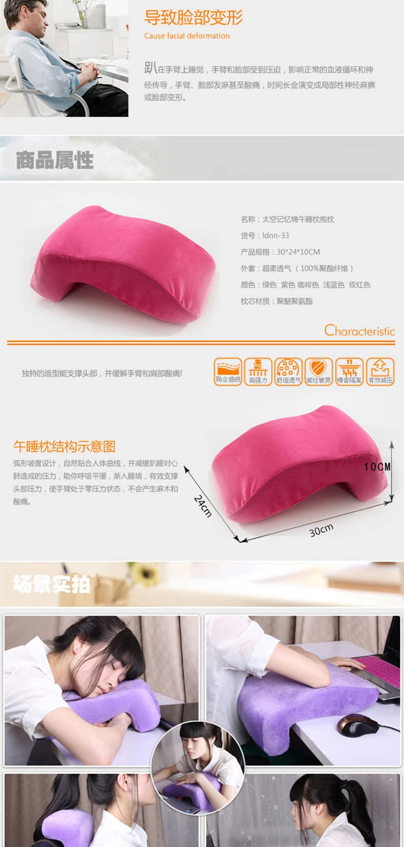 | Filling: Memory Foam | Color: Royal Blue | Scarlet Red | Pink | Fruity Green | Yellow | Xueqing | Coffee | Beige | Light Pink | Camel | Dark Pink | Dark Purple | Sky Blue | Silver Gray | Purple | Size Specification: 33*24*11/9CM |