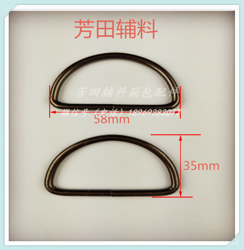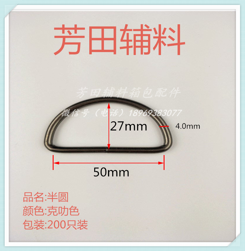 【Product Model】:4.0 thick * 50 inner diameter * 27 inner heightBright white wire ring semi-circle D-shaped D-ring 【Product Size】:4.0 thick * 50 inner diameter * 27 inner height 【Product Material】: Iron 【Product Color】: Bright White, Gun Black, Bronze are in stock. Other colors can be custom-made according to customer's requirements! |