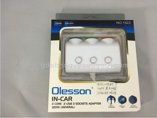 Multifunctional car cigarette lighter 3 double USB 1523 black and white