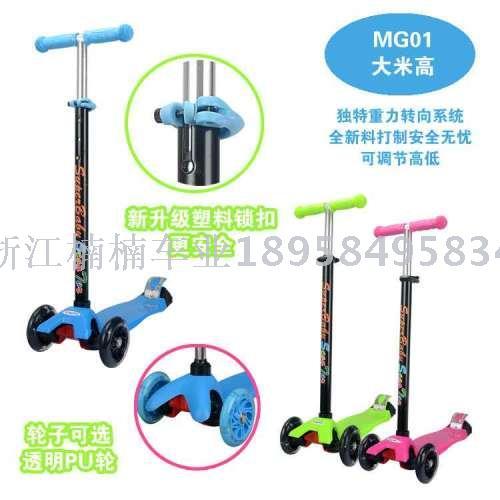 Authentic new children's scooters, Swiss design: fashion elegant appearance, high elastic pu round soft abrasion. Glass fiber reinforced base, strong bearing force, four-wheel flash, car lights, music, folding, adjustable height, color bright beautiful.