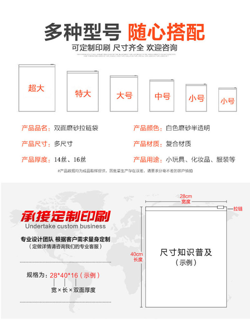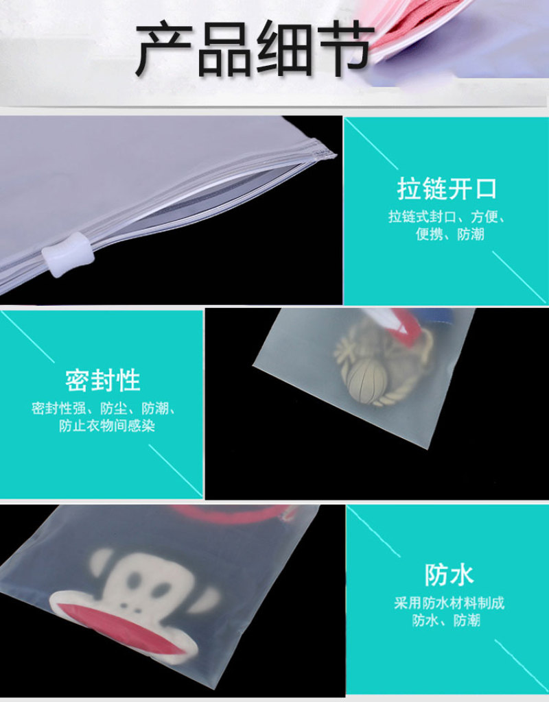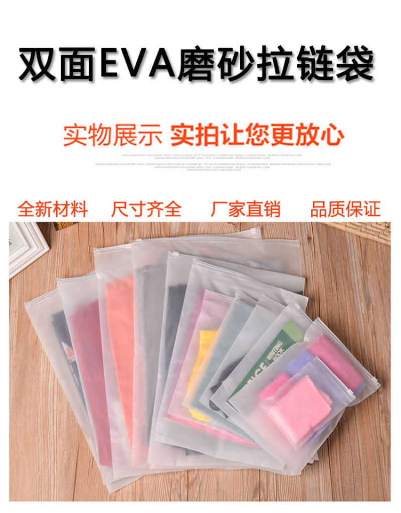 Material: Double-sided whiteSanded EVA Environmental Film + PEPlasticZipper + Zipper Head(Resilient, very soft film, brand new EVA extrusion film material,Zipper Sealing)