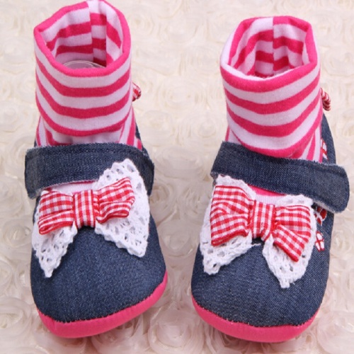 鞋面材质:棉布 鞋底材质:布底 穿着方式:套筒/套鞋 流行元素:蝴蝶结 适用年龄:0-1岁宝宝
