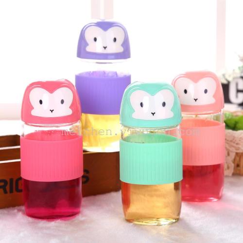 popular cute creative little monkey high borosilicate glasses portable student girl tea cup