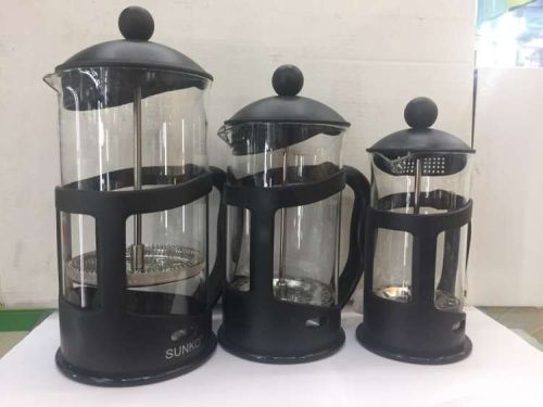 材质:壶身(玻璃)壶架、壶盖、压杆(不锈钢)把手(pp)