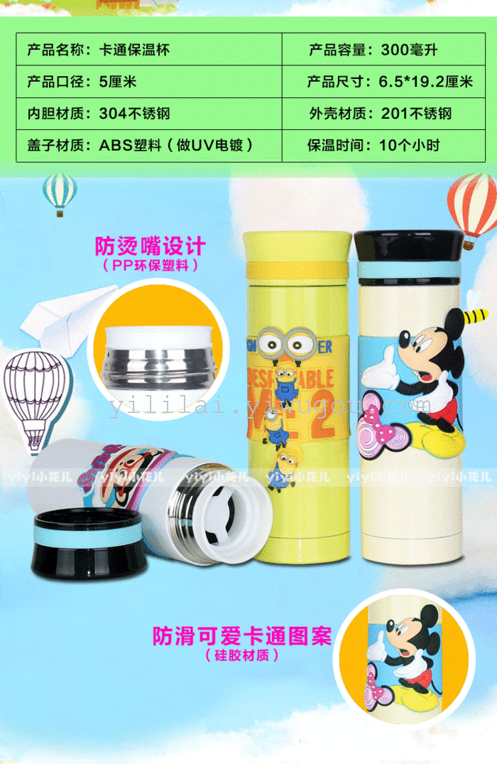 Totoro cartoon duo A dream small yellow man Paul Minnie children Cup stainless steel mug