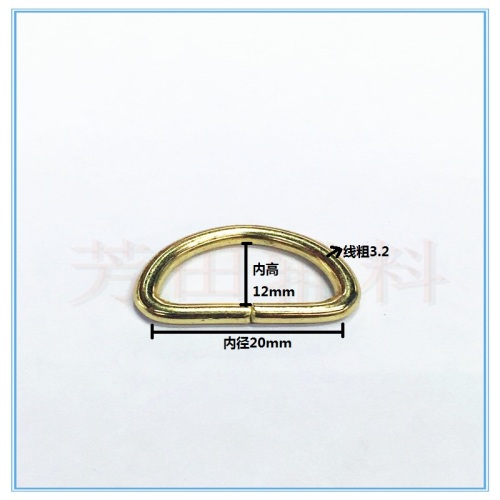 In-stock iron semi-circle D-shaped with gold-tone finish, specifications are 3.2mm wire diameter * 20mm inner diameter * 12mm inner height. We have 3000 pieces in gold tone in stock, and other colors can be custom-made. Quantity discounts are available.