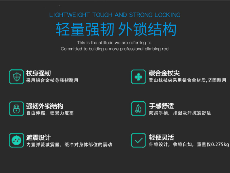 Material: 7075 aircraft aluminum alloy shaft + EVA handle + tungsten steel tip