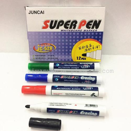 This whiteboard pen comes in colors black, blue, and red. The ink used is non-toxic and environmentally friendly, with stable quality, bright colors, and dry immediately after writing. It leaves no trace when wiped, and when writing, it is recommended to cover the cap tightly to prevent the ink from evaporating. It is sold in boxes of 10 and cases of 1,200. Welcome to place an order!