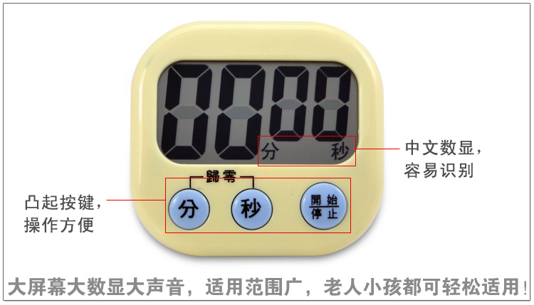 本产品广泛适用于设定蒸煮、午体、学习、美容、煲汤、晒版、行车、运动、通话、实验、会议...等等时间;
